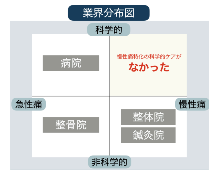 そんな痛みで悩む方が「それなら整痛院に行こう」「あそこに行ったら大丈夫」と長く続く辛い痛みでも改善できる場所がある安心を抱いていただき、実際に悩みを解決する、そして「痛みの第一選択」になることが私たちの目指す先です。